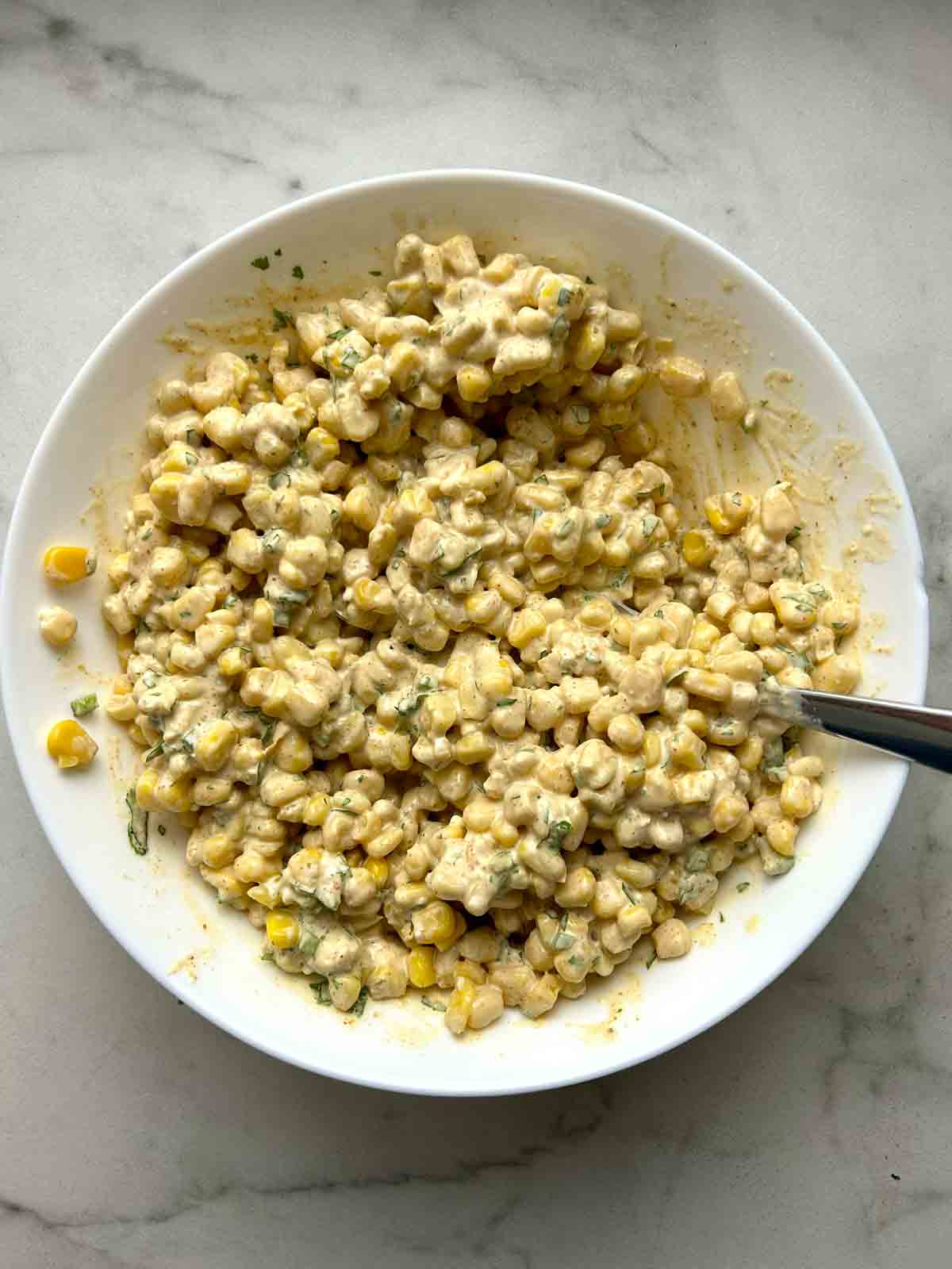 Have you ever had Mexican street corn (elotes) before? Its SO flavorful and delicious. Imagine regular corn but elevated to the next level. It's sweet, spicy, tangy, and a little bit smoky. The flavor comes from being slathered with a creamy mayo-based sauce scented with lime, chili flakes, and salty cotija cheese.