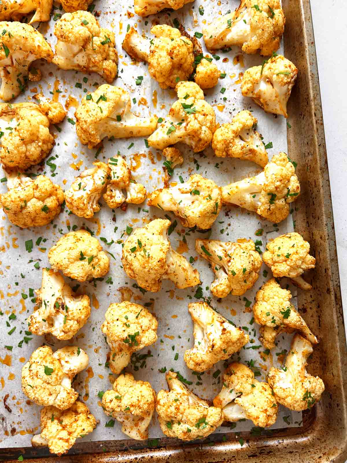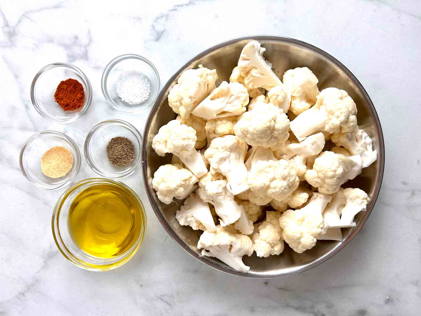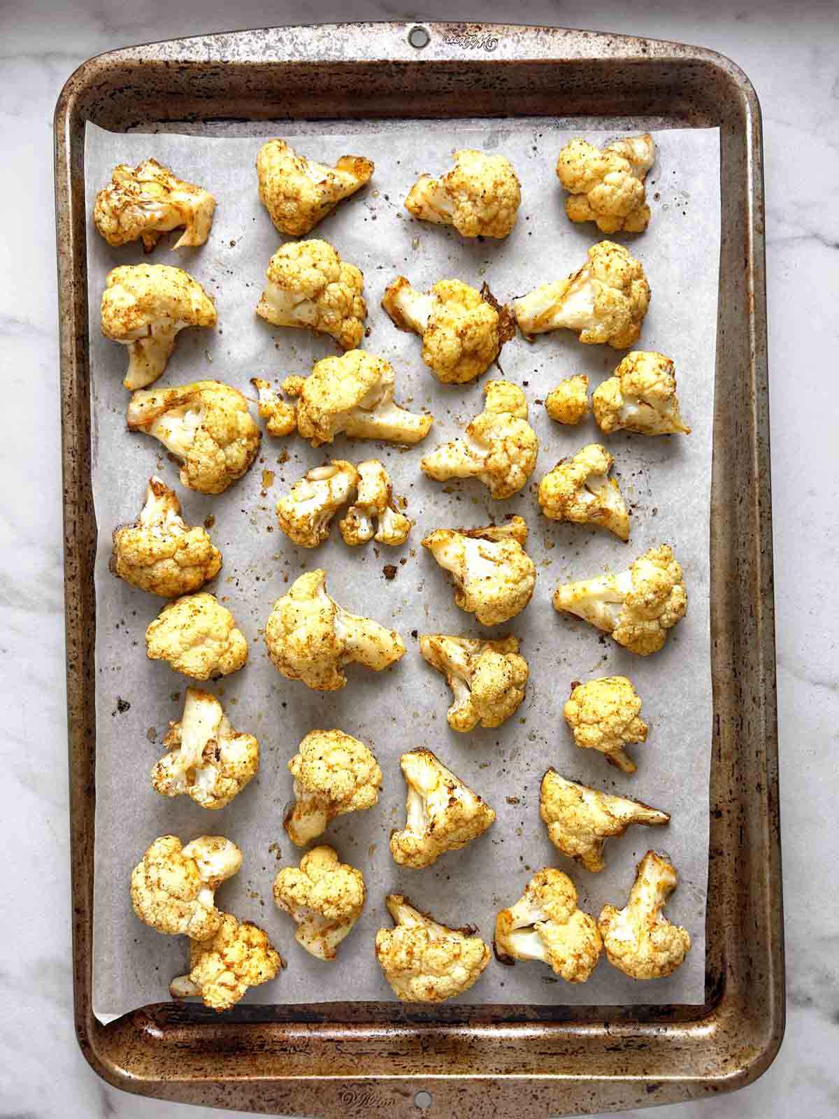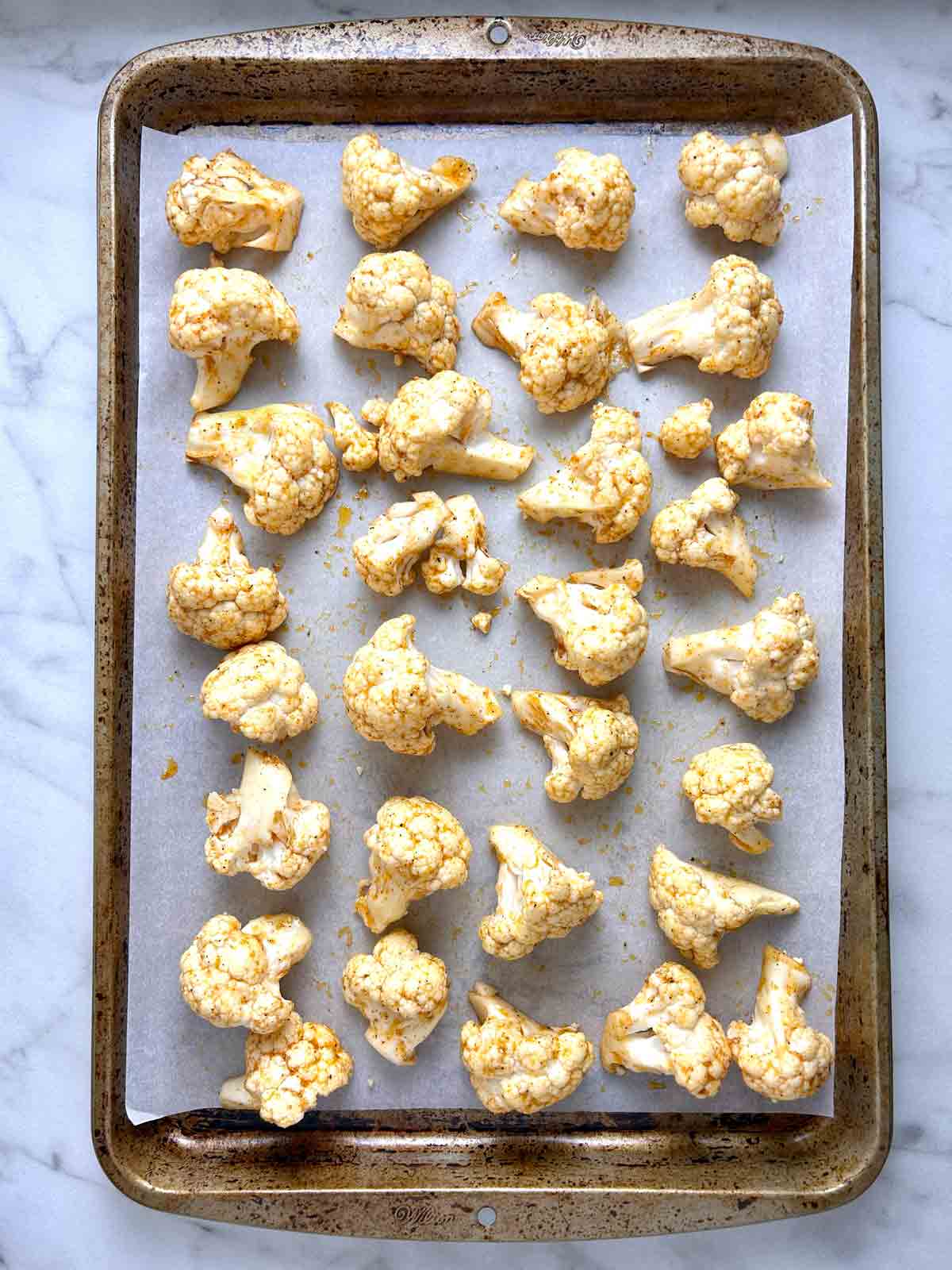 Cauliflower: I used a medium head of cauliflower, cut into florets. Keep in mind that you want to leave some space between each floret on the baking pan. If your cauliflower is extra large, I suggest cooking only half of it.